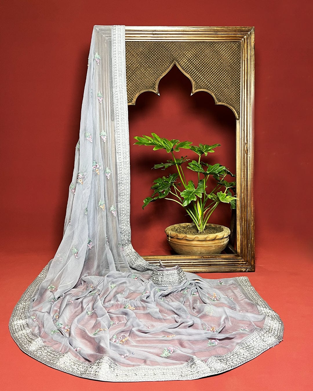 -Embroidered Pure Bamber Crinkle Duppatta