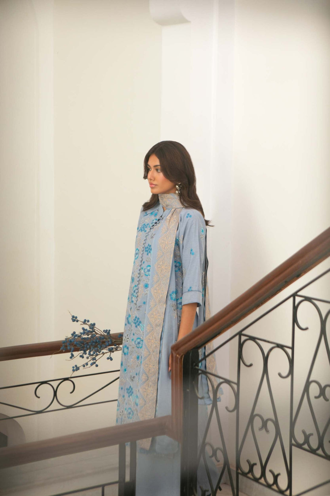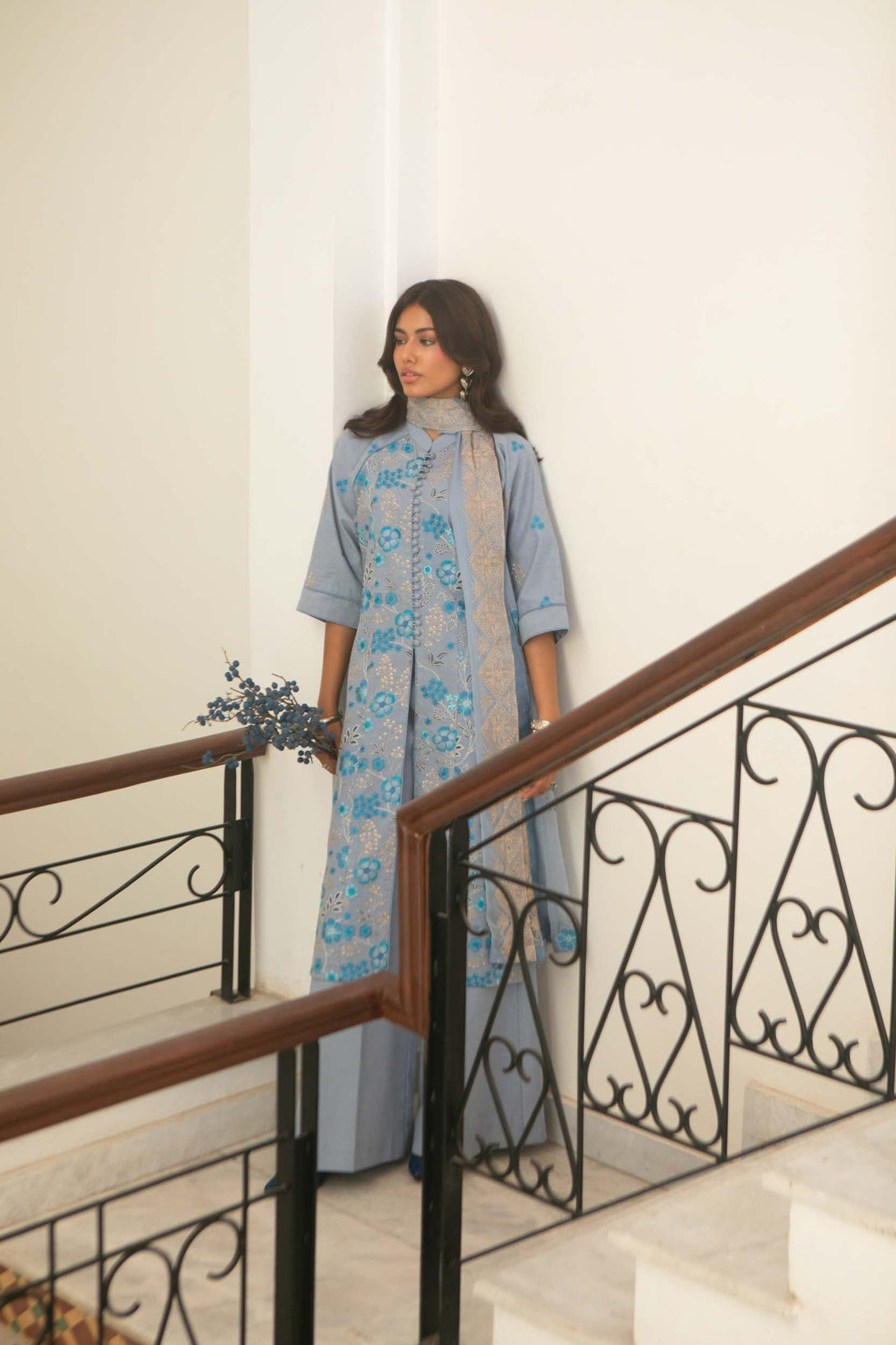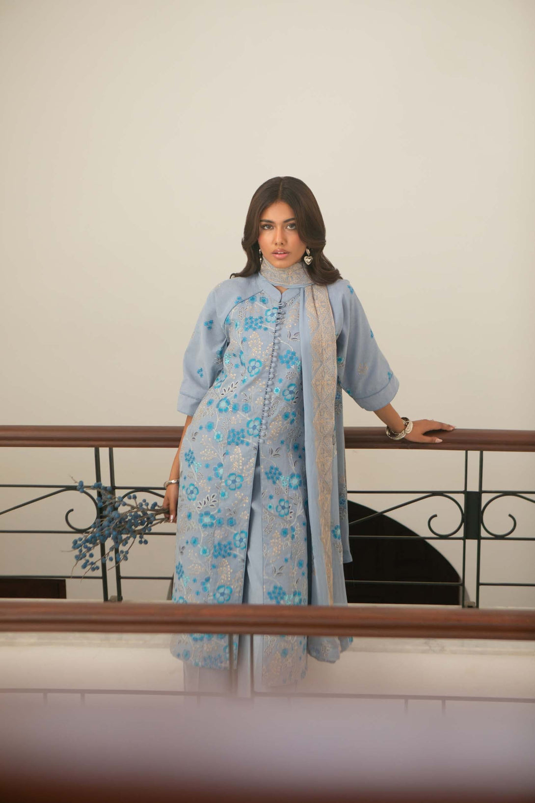 -Embroidered Pure Bamber Crinkle Dupatta