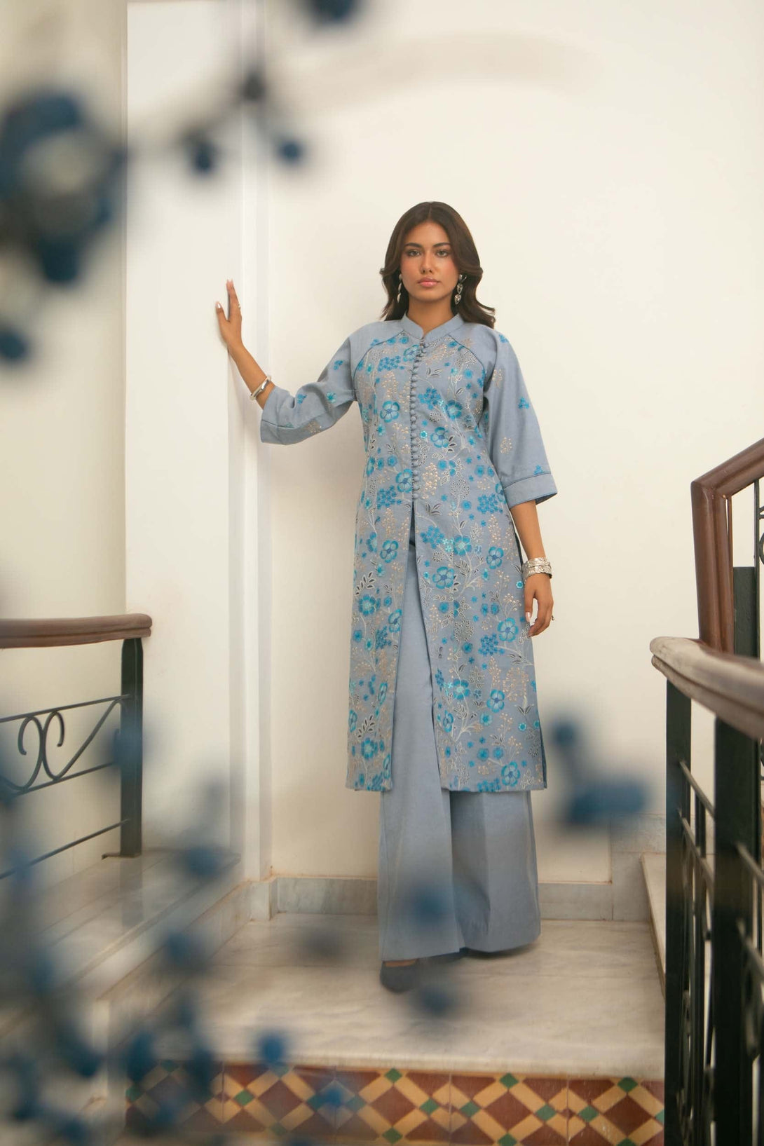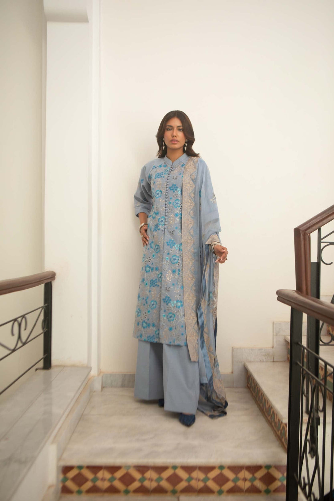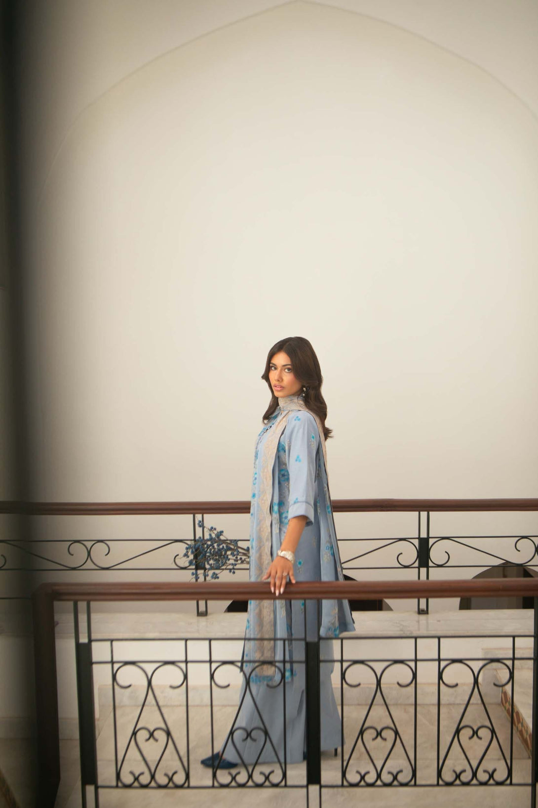 -Embroidered Pure Bamber Crinkle Dupatta