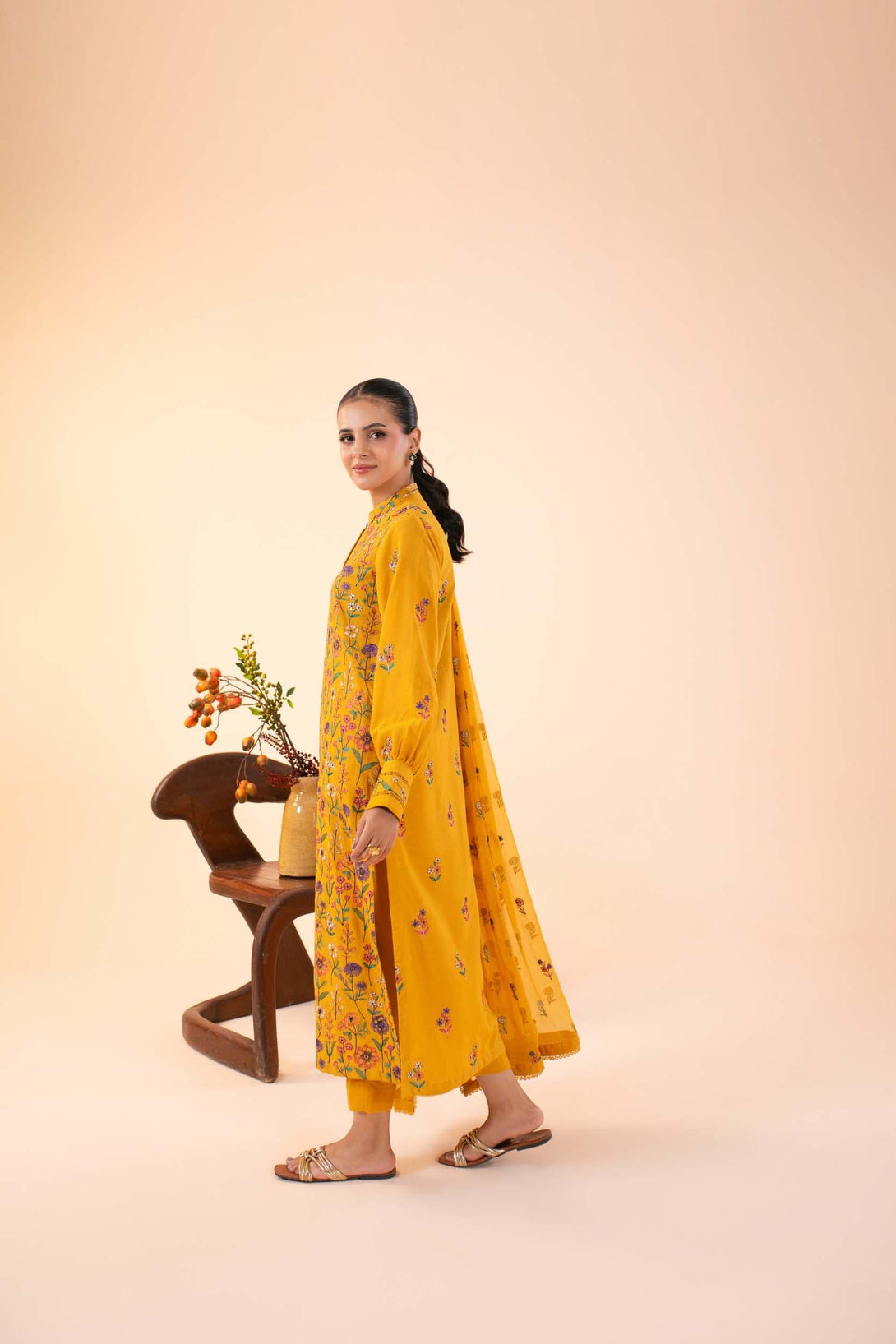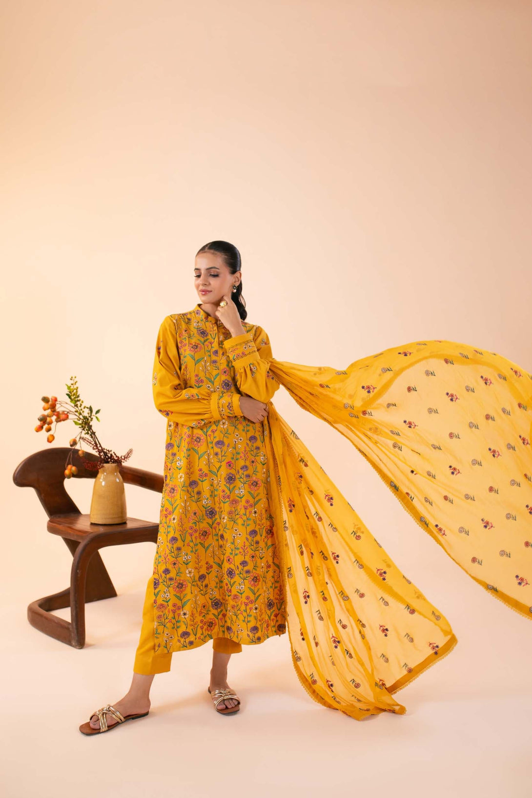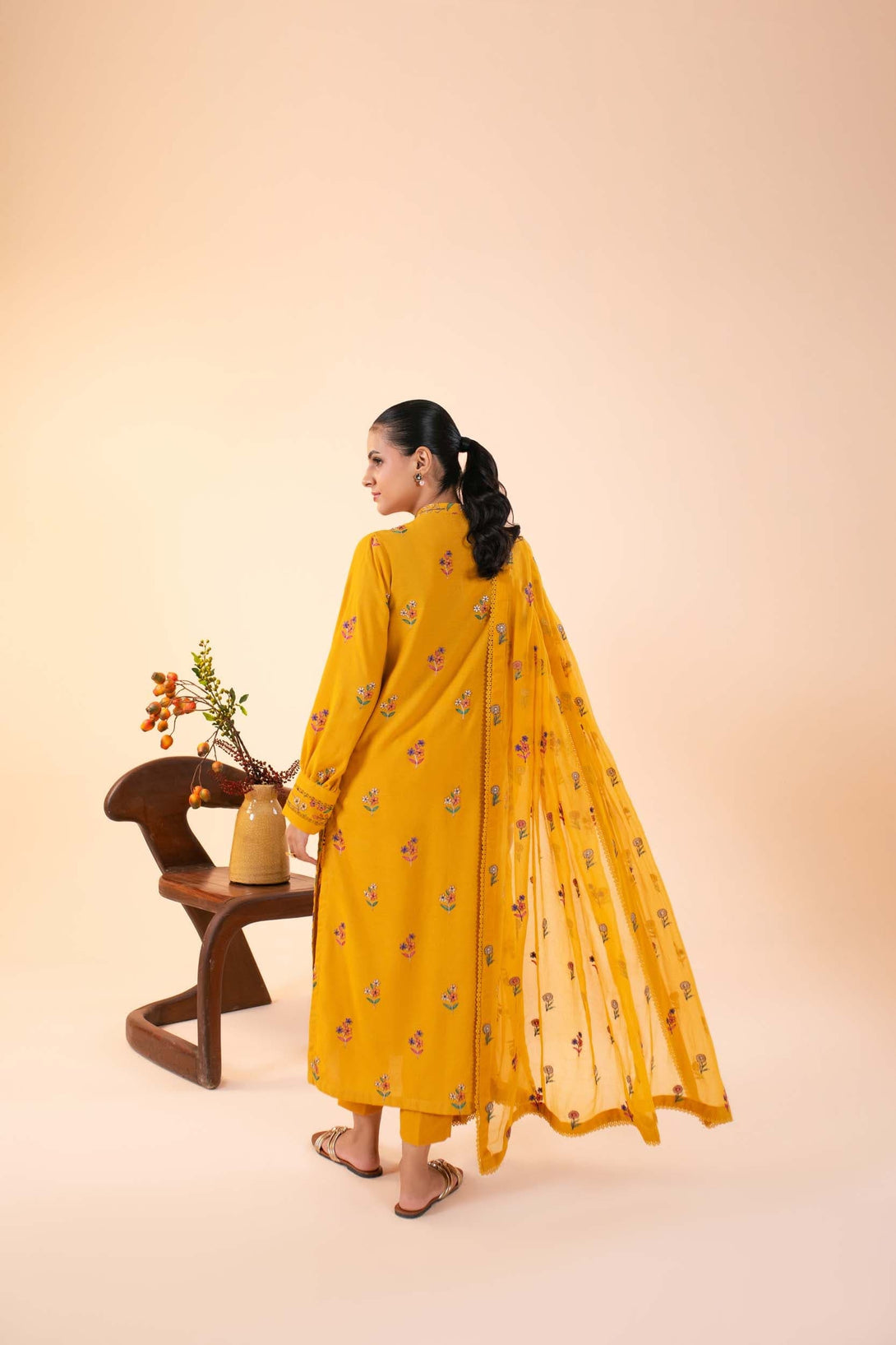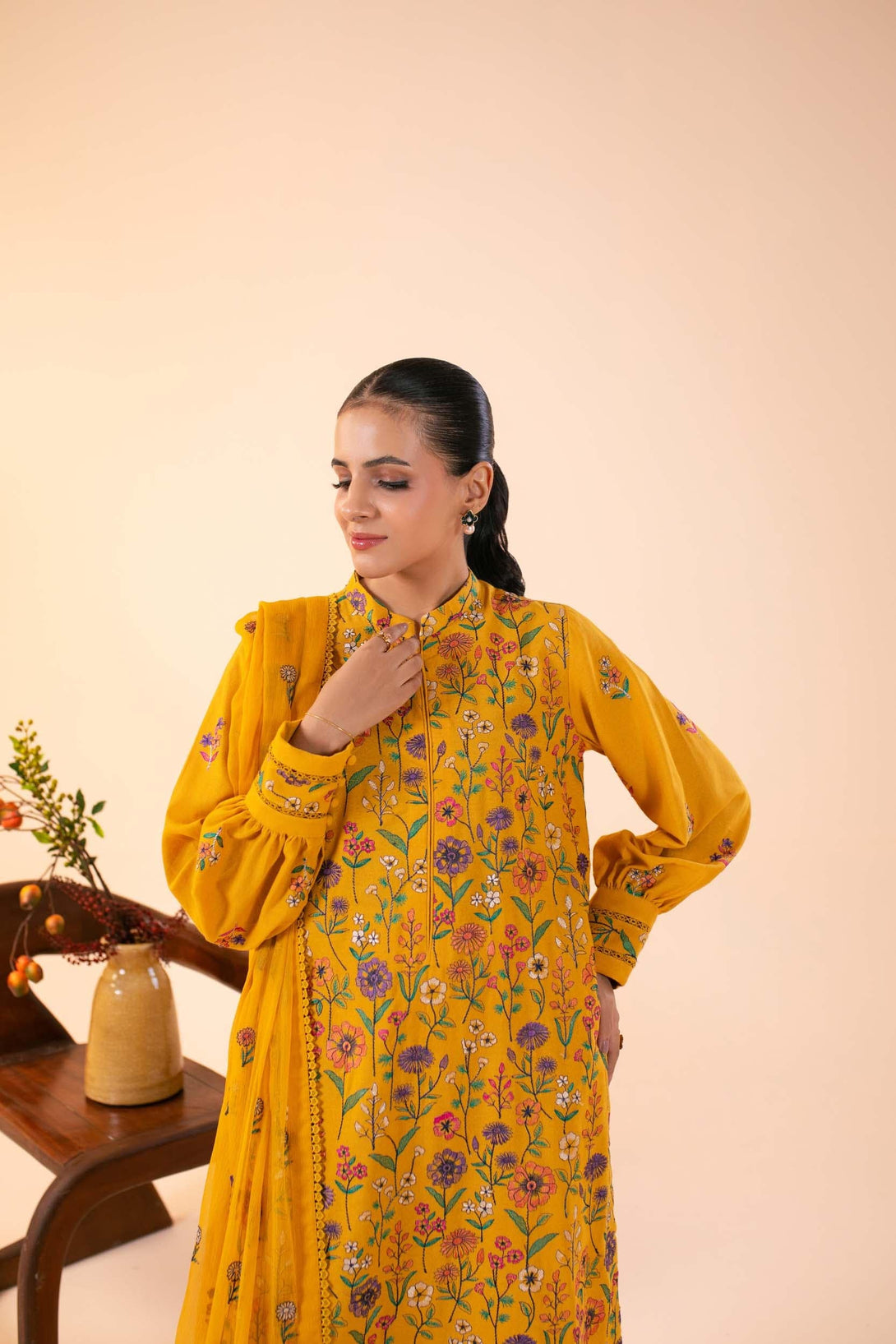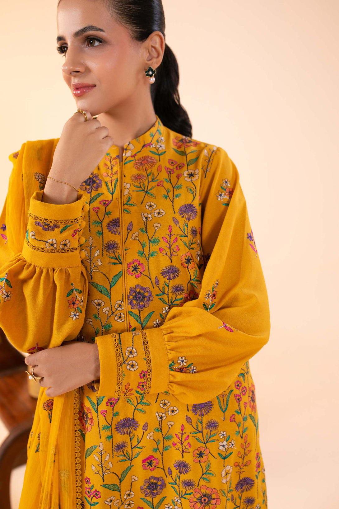 -Embroidered Pure Bamber Crinkle Dupatta