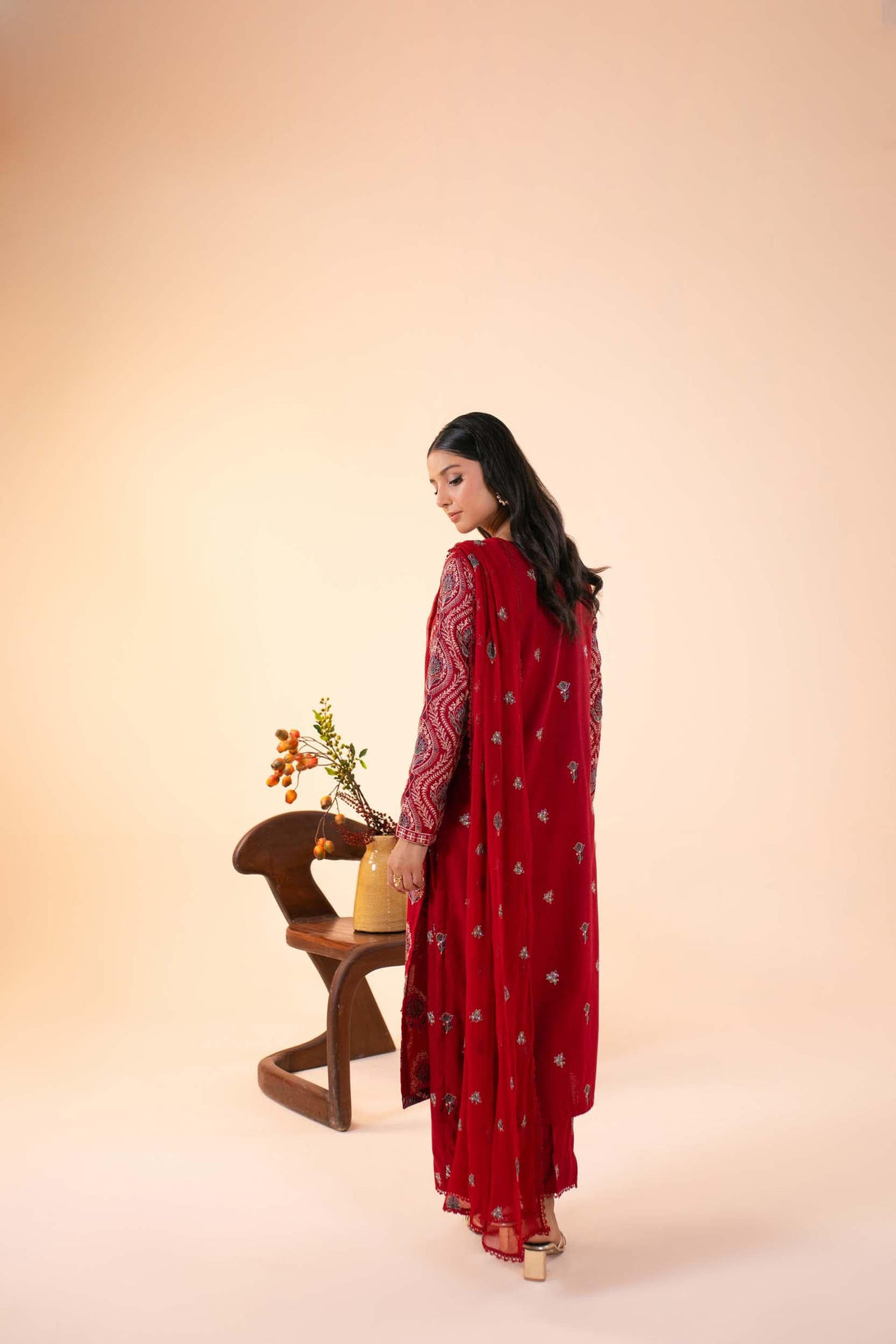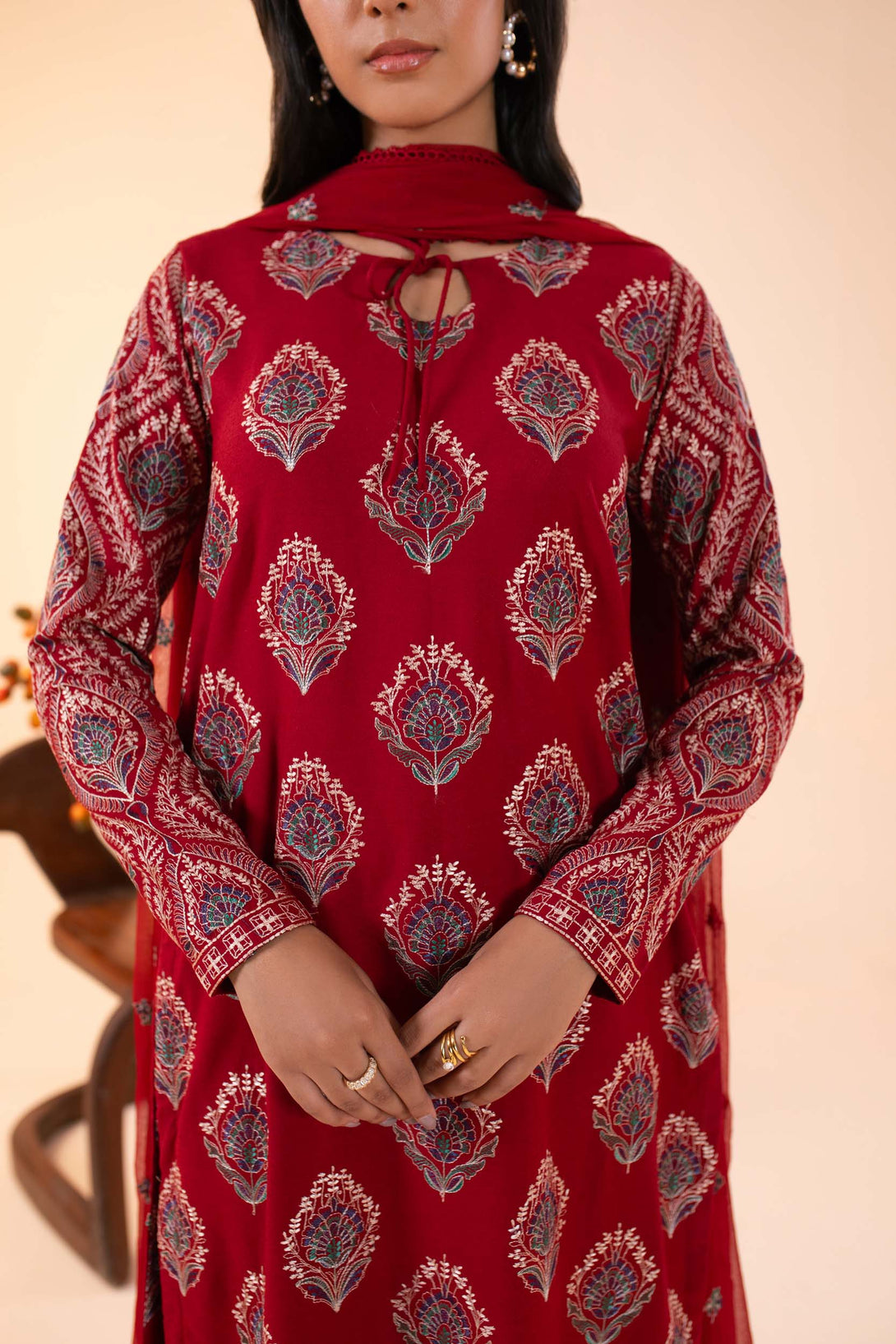 -Embroidered Pure Bamber Crinkle Dupatta