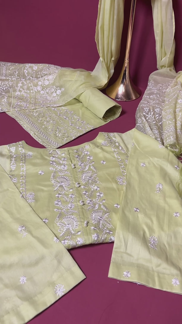The fully embroidered shirt showcases intricate craftsmanship, while the straight trousers offer a flattering silhouette. Complete your look with the luxurious pure bamber crinkle dupatta, adorned with delicate fringes along the border, adding a touch of grace to any occasion. Perfect for festive celebrations or upscale gatherings, this ensemble promises to make a stunning statement. Indulge in the allure of this stunning outfit and embrace your inner diva.