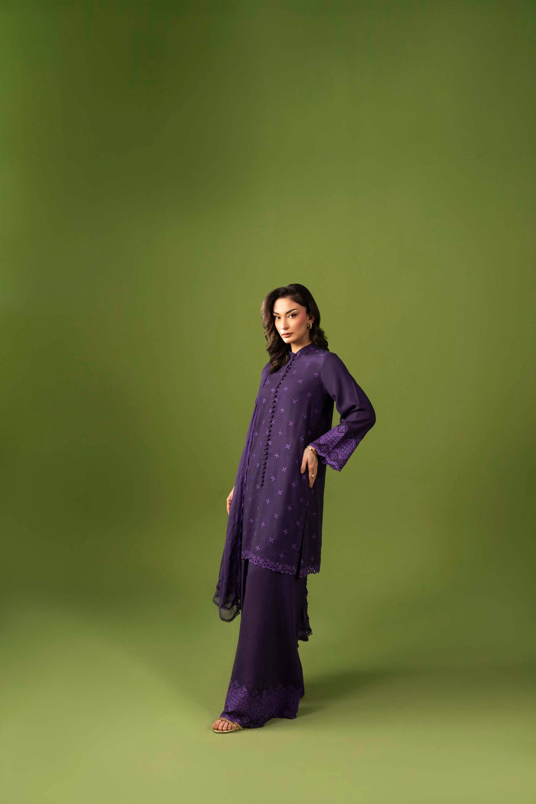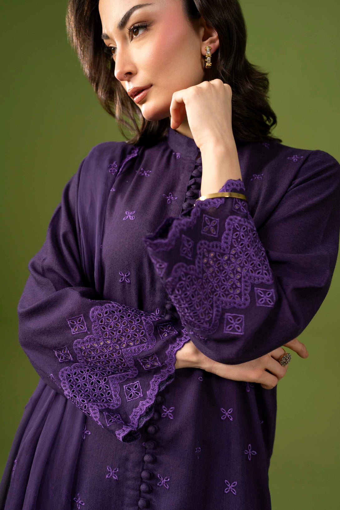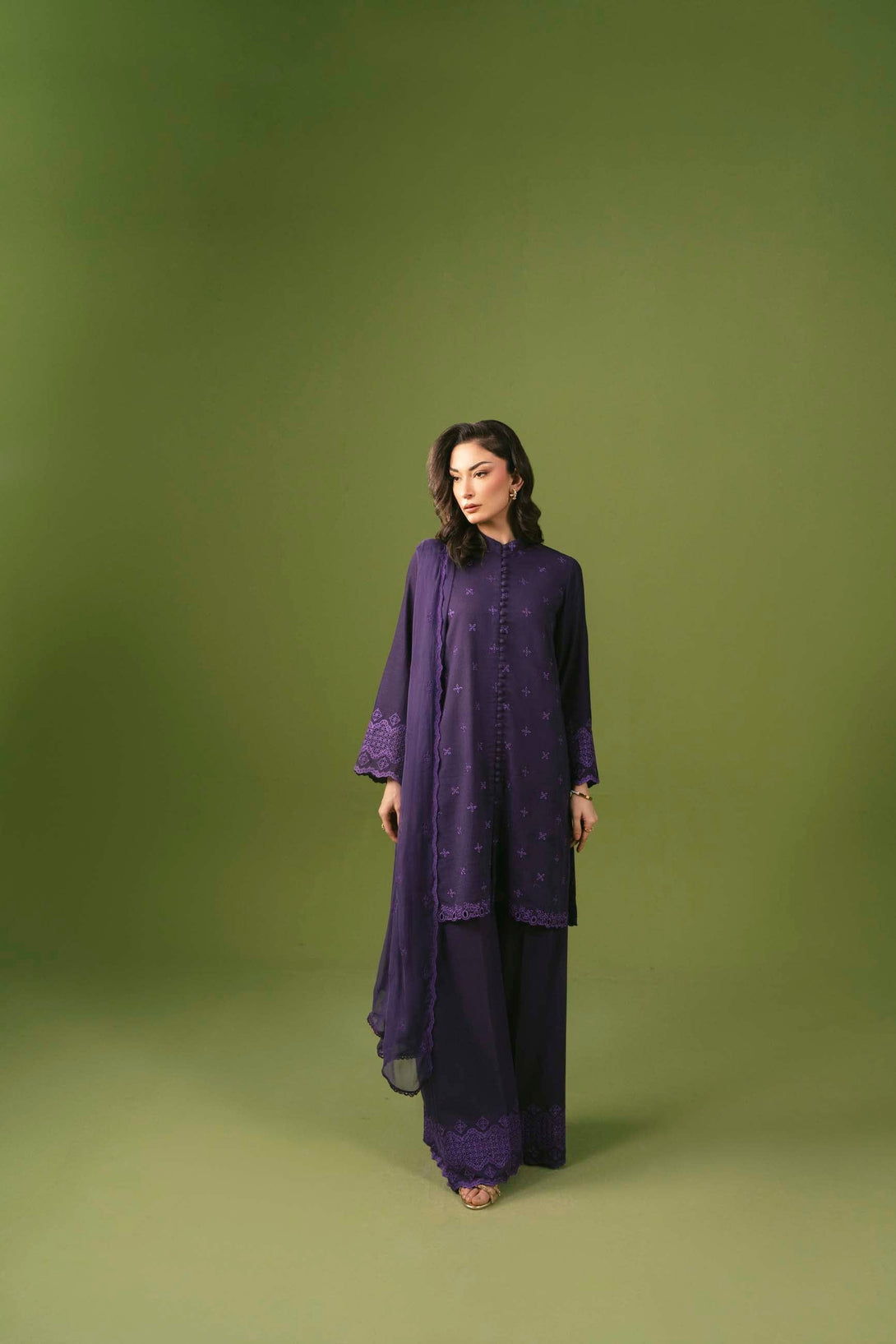 -Embroidered Pure Bamber Crinkle Duppatta