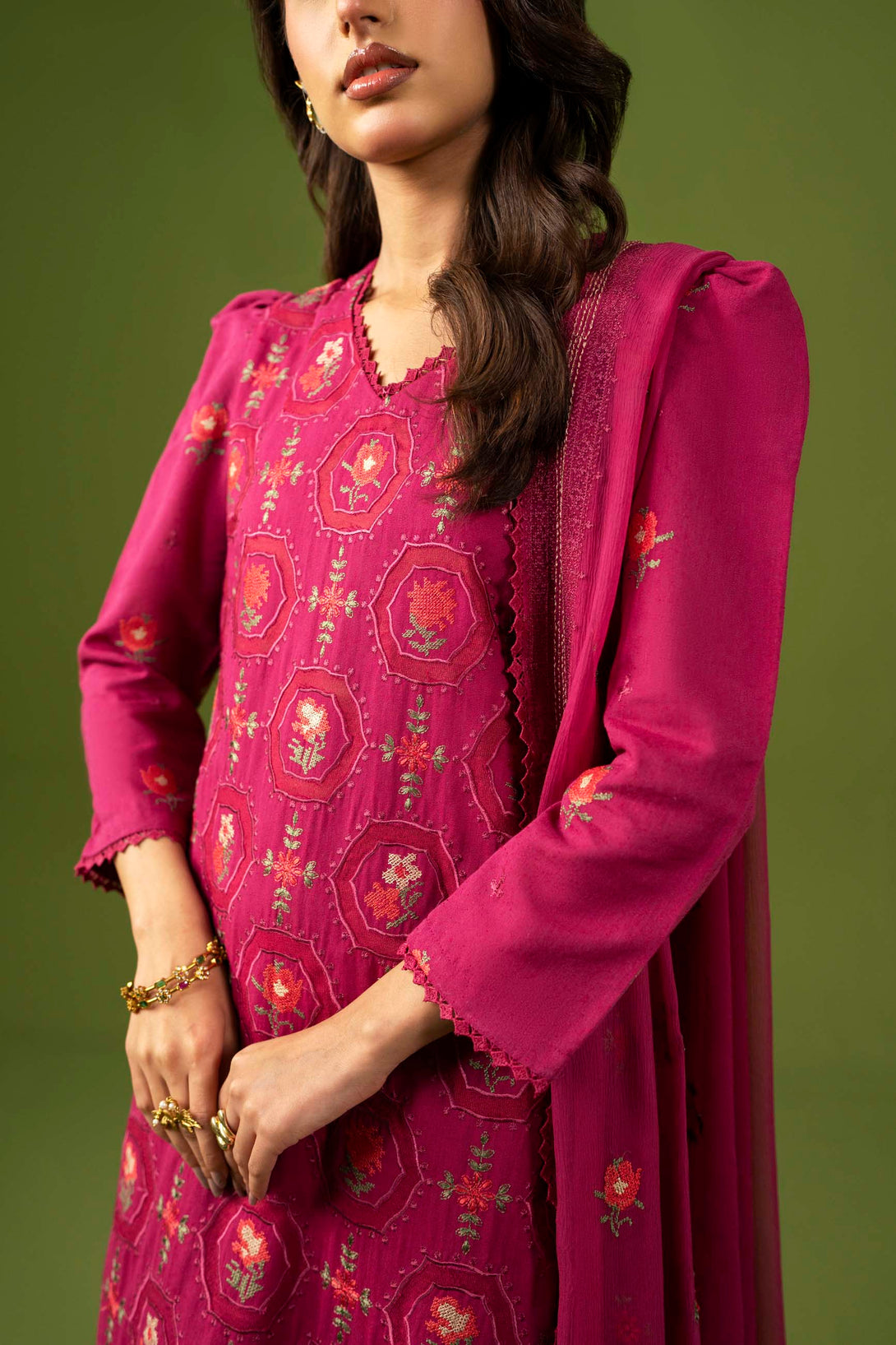 -Embroidered Pure Bamber Crinkle DUPPATTA