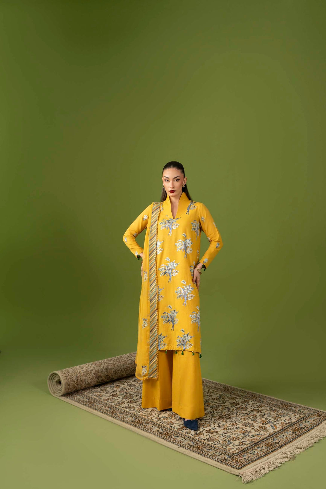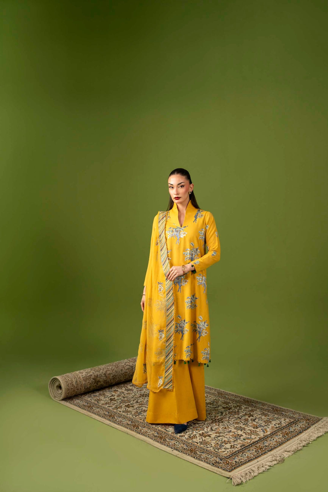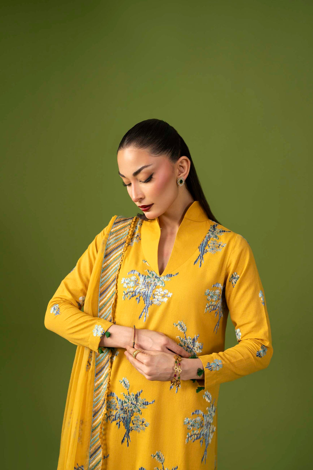 -Embroidered Pure Bamber Crinkle Duppatta