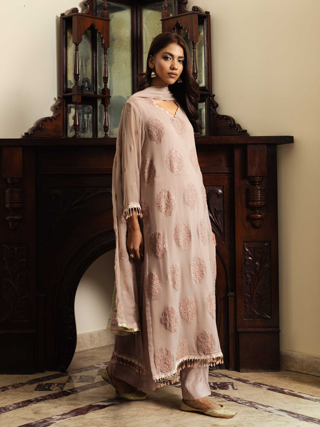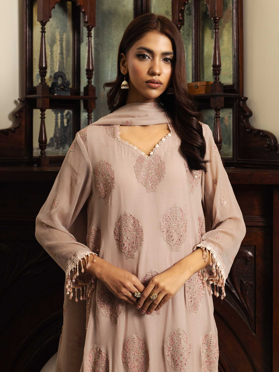 -Embroidered Crinkle Dupatta