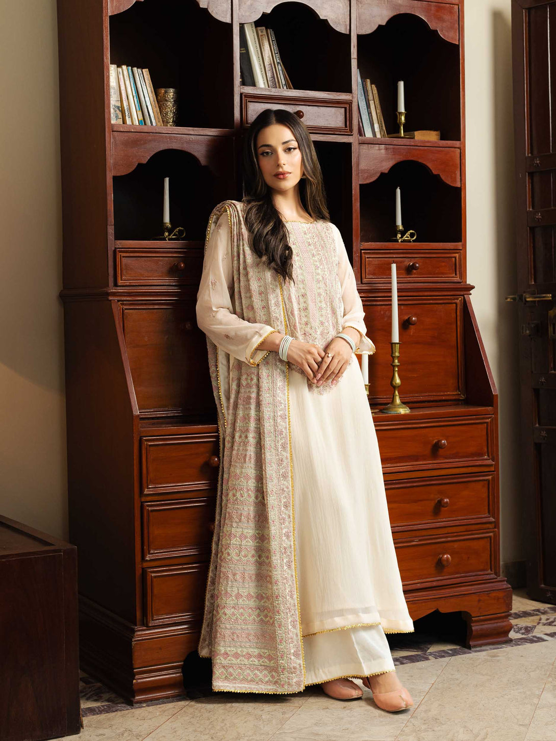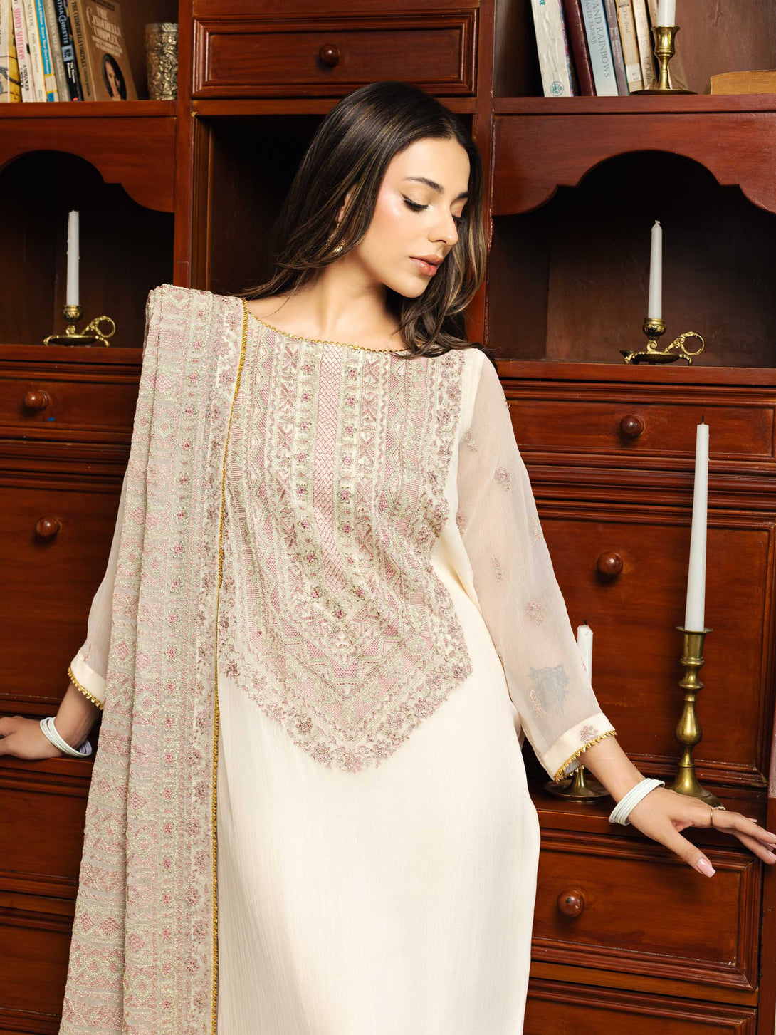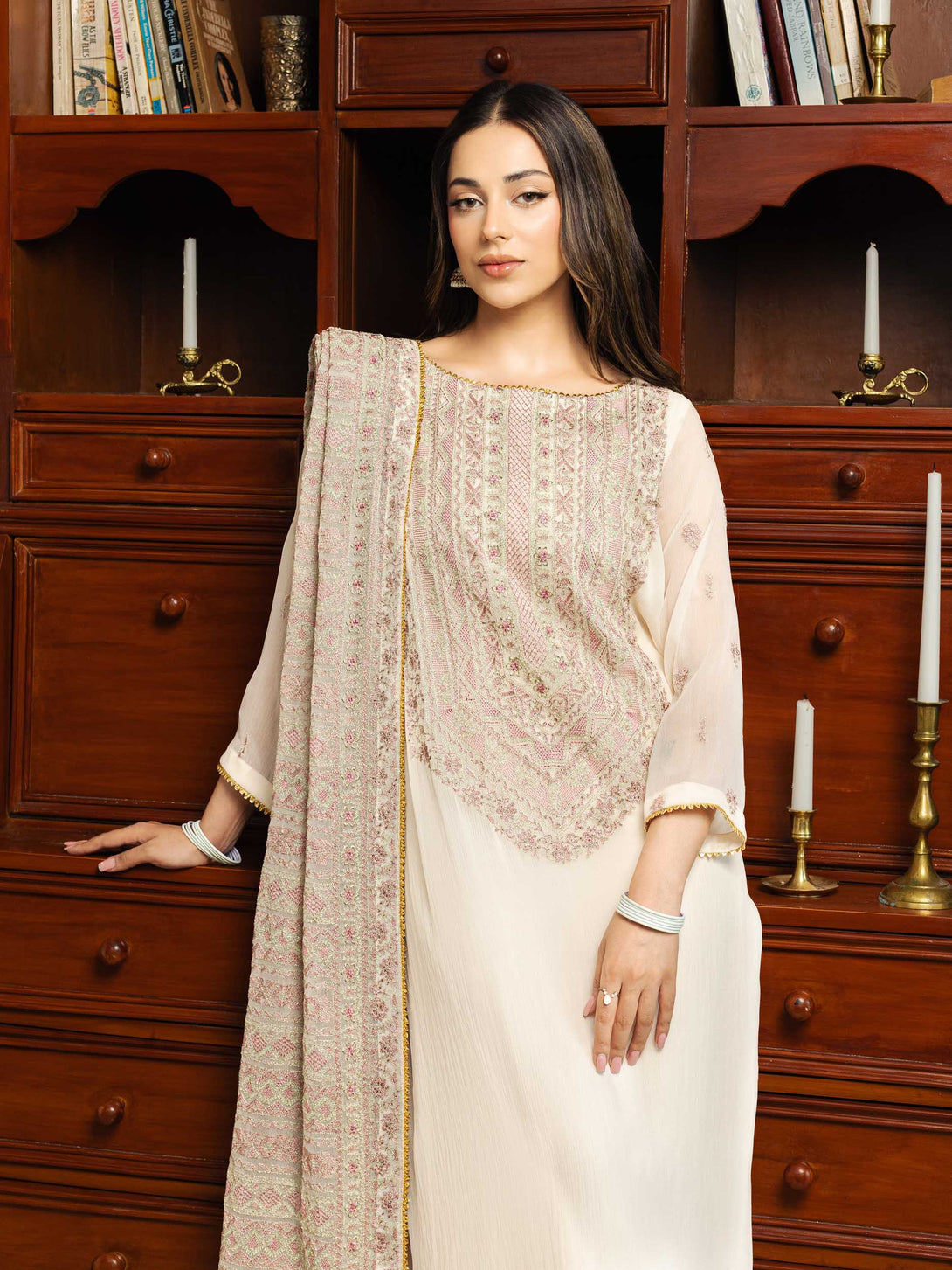-Embroidered Crinkle Shawl