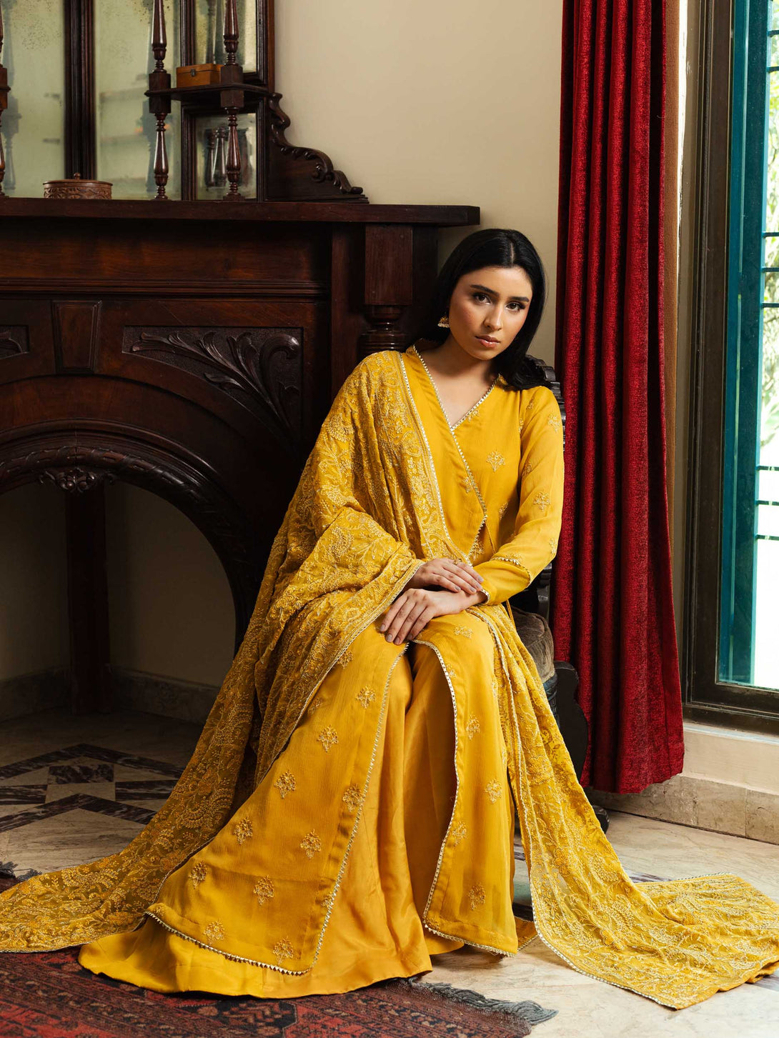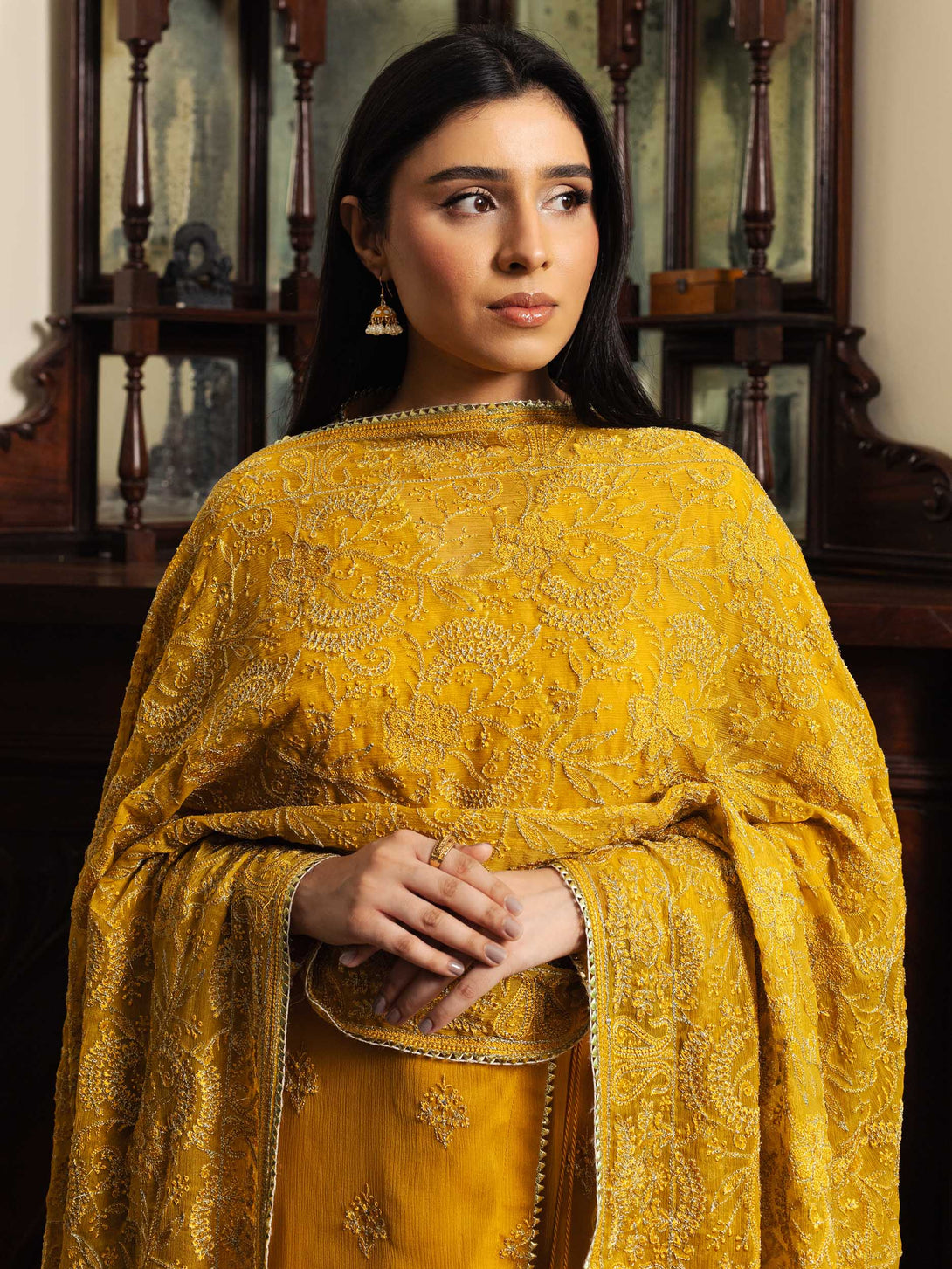 -Embroidered Crinkle Shawl